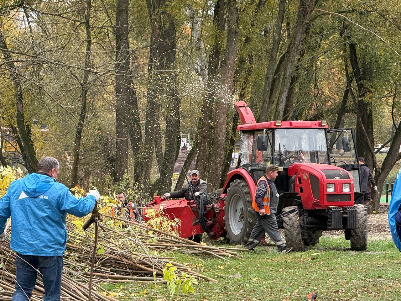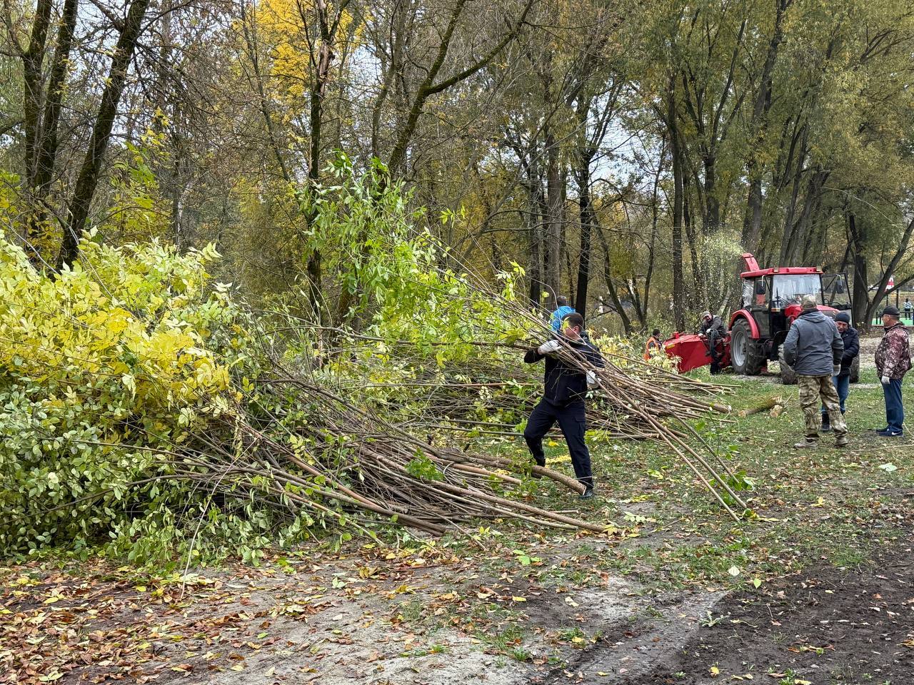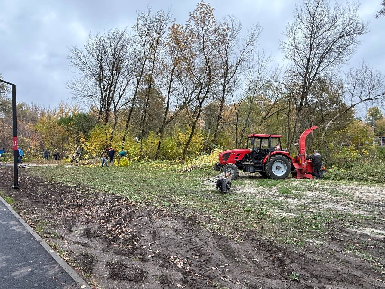 В ходе акции была устранена поросль вдоль беговой дорожки. Для проведения работ использовалось порядка 10 бензобил и грузовые автомобили. Ветки измельчались сразу на месте – в специальной дробилке.