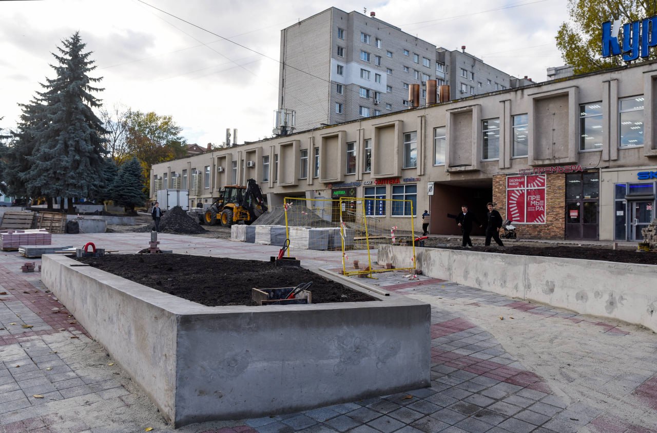 Подрядчик теперь исправно работает, завершена установка подпорных стен, почти закончили укладывать плитку, скоро приступят к асфальтированию и заливке конструкции под качели, будут установлены МАФы и скамейки, высадят более 30 деревьев и более 230 кустарников, клумбы и газон, рассказал Александр Хинштейн. Параллельно собственник ТЦ должен будет привести в порядок вывеску. Завершить благоустройство должны до конца октября. Подрядчик показал главе региона визуализацию скульптуры Куряночки, Александр Хинштейн внёс несколько замечаний.