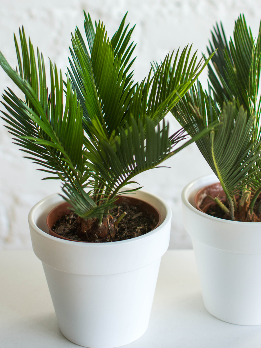 - Освещение: этот зеленый друг предпочитает рассеянный свет. Полутень на подоконнике станет отличным местом, так как прямые солнечные лучи могут вызвать пожелтение листьев. Если заметны изменения, значит, цикасу не хватает света.