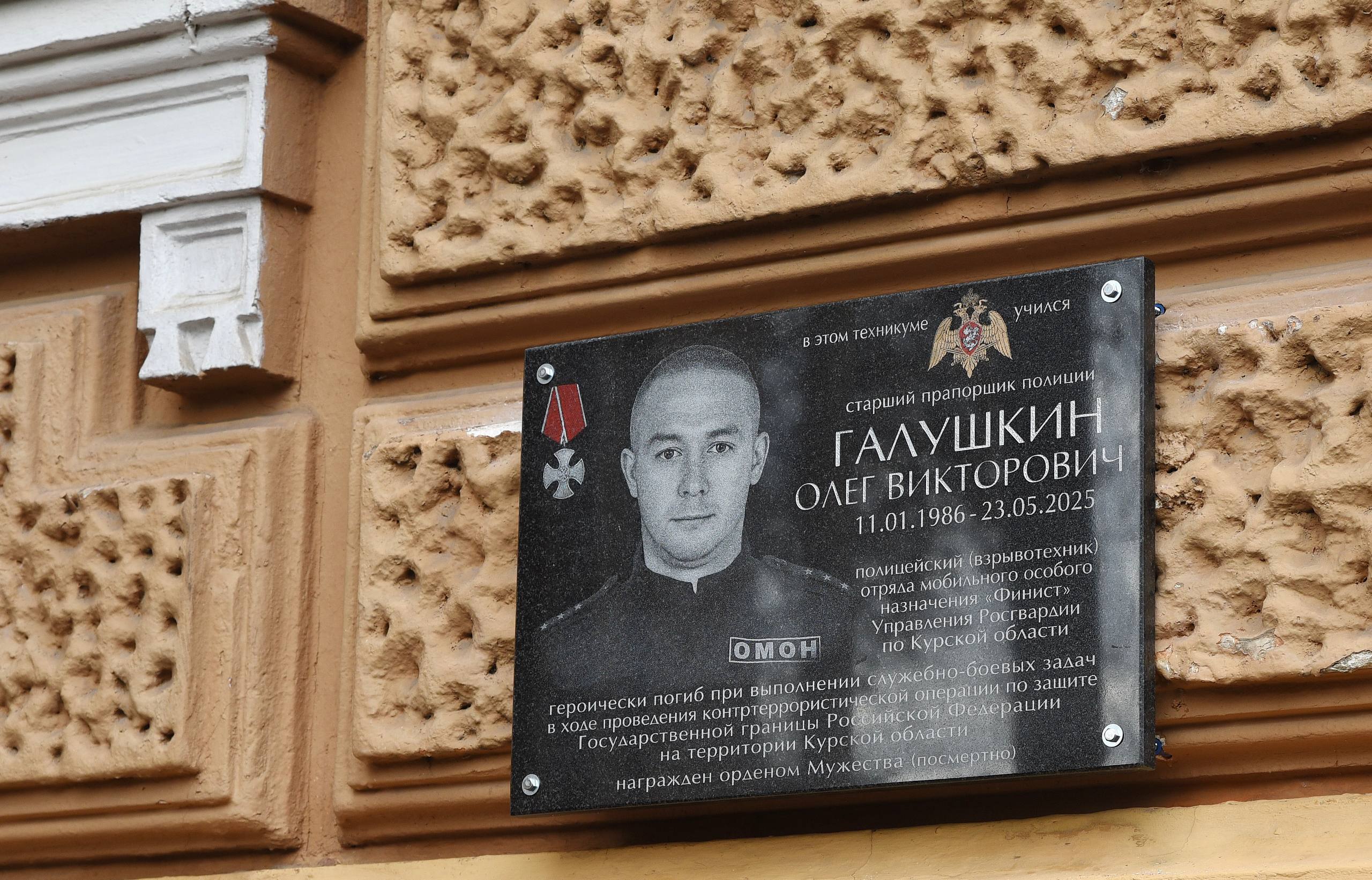 К сожалению, уходят лучшие — те, кто способен жертвовать собой во имя других. В память о погибшем при исполнении служебного долга сотруднике ОМОН «Финист» Управления Росгвардии по Курской области старшем прапорщике полиции Олеге Галушкине вместе с его родными открыли мемориальную доску на фасаде Курского монтажного техникума имени Героя России Артура Лапшина.