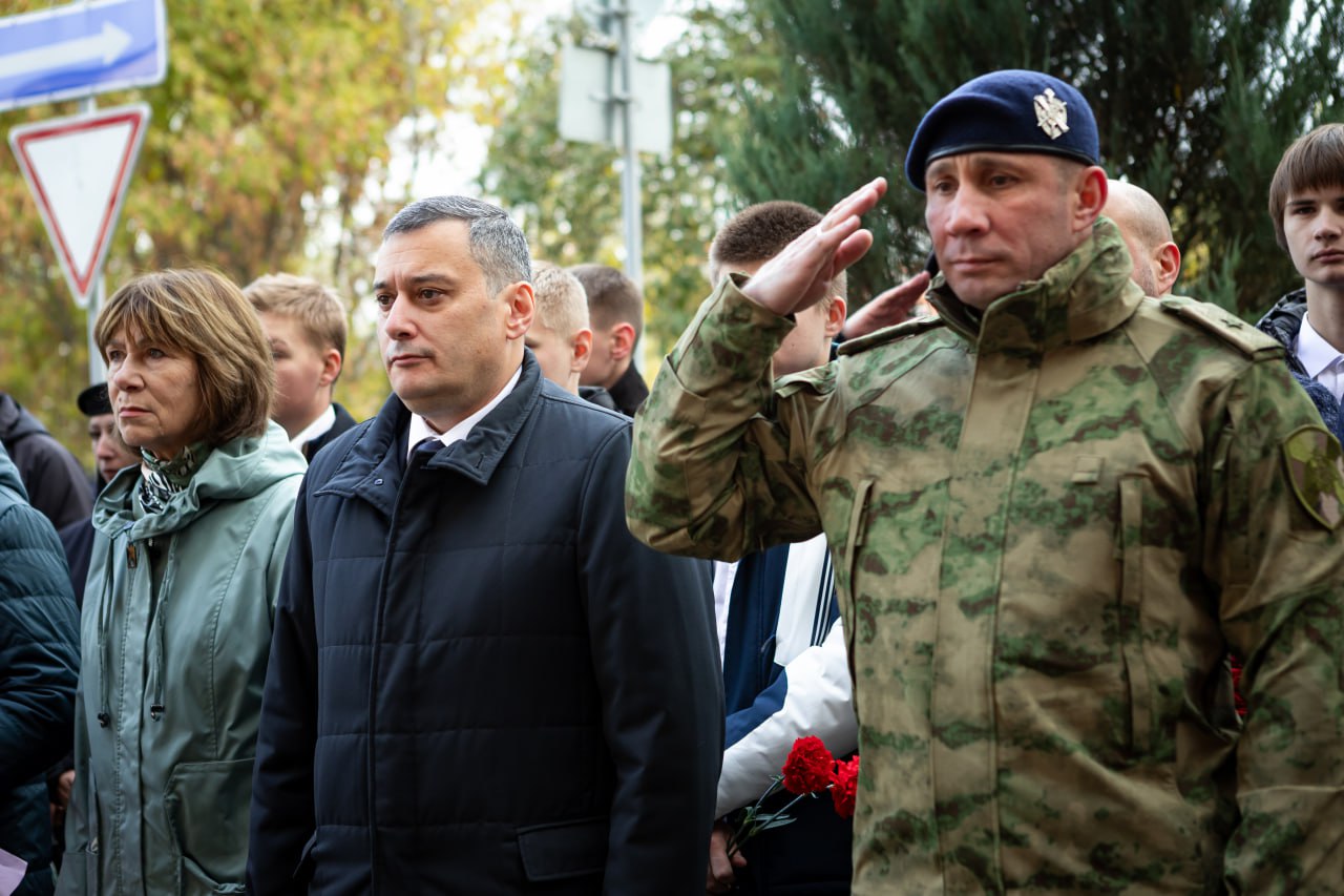 Принял участие вместе с губернатором Александром Хинштейном в открытии на фасаде Курского монтажного техникума имени А.В. Лапшина памятной доски в честь погибшего при исполнении служебного долга сотрудника ОМОН «Финист» Управления Росгвардии по Курской области, старшего прапорщика полиции Олега Галушкина.