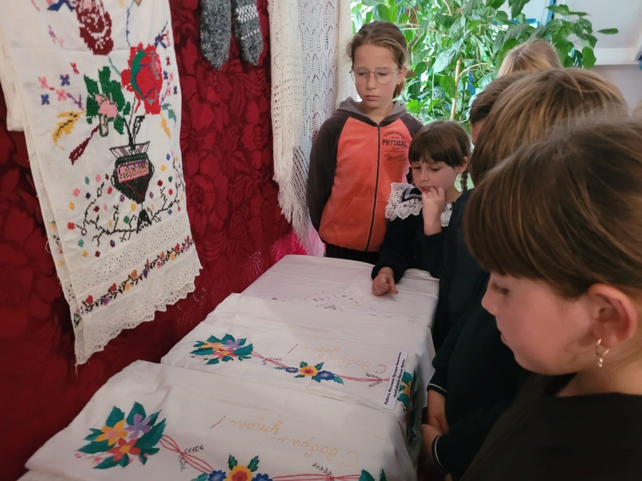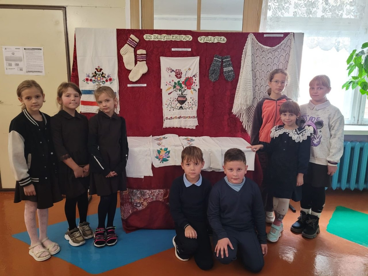 Гостями выставки стали Орлята школы. Им рассказали о жизни старшего поколения и о трудностях, с которыми сталкивались их предки. Школьники с интересом рассматривали рушники и наволочки с изящной вышивкой, вязаные носки и варежки, которые бабушки и прабабушки с любовью создавали для своих внуков.