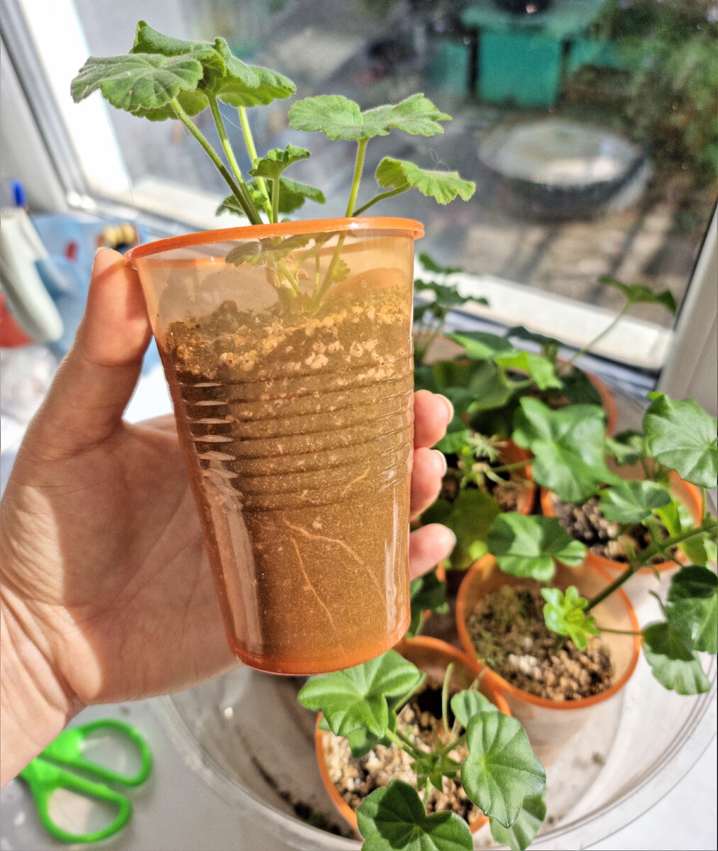 Не стоит спешить с пересадкой; лучше всего оставлять молодые растения в небольших стаканчиках на 4–6 недель, чтобы они смогли укрепить корневую систему. Когда корни обвивают стакан, можно аккуратно перевалить черенки в горшочки объёмом 400-500 мл.