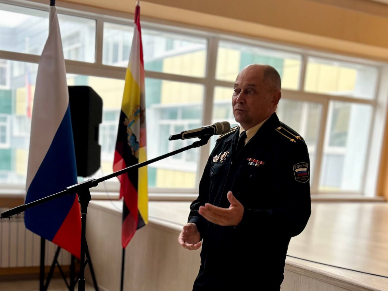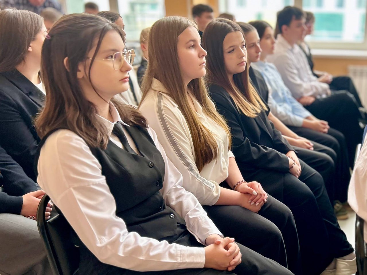 Ученики 8-11 классов встретились с представителями ветеранского актива. Школьники пообщались с теми, кто на своем опыте знает о службе Отечеству. Среди почетных гостей мероприятия: заместитель председателя совета ветеранов войны, труда, Вооруженных сил и правоохранительных органов Сеймского округа Курска Владимир Голосов, ветераны военной службы Василий Русаков и Борис Сапин, капитан 2-го ранга, ветеран ВМФ, председатель совета отцов при администрации Сеймского округа, руководитель исполнительного комитета Российского союза ветеранов Афганистана и специальных военных операций Олег Чулков, ветеран Великой Отечественной войны Виктор Шатохин, участник СВО Сергей Богатых и участник ликвидации последствий аварии на Чернобыльской АЭС Ясен Гусейнов.