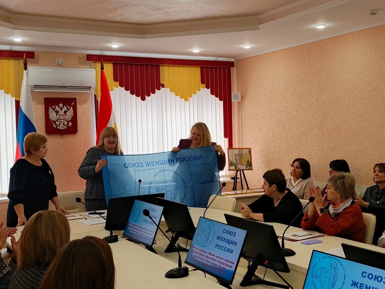 На собрании был сформирован новый состав Совета местного отделения, его председателем единодушно была вновь избрана Наталья Ларина, послом культуры стала Юлия Черняк, начальник МКУ "Управление культуры", амбассадором по развития малого и среднего предпринимательства - Оксана Орлова, индивидуальный предприниматель. Красивым финалом этой встречи стало не только общее фото на память, но и общее мнение её участников о том, что собравший сегодня нас всех вместе СОЮЗ женщин России продолжает быть для всех его членов настоящей школой гражданской активности.