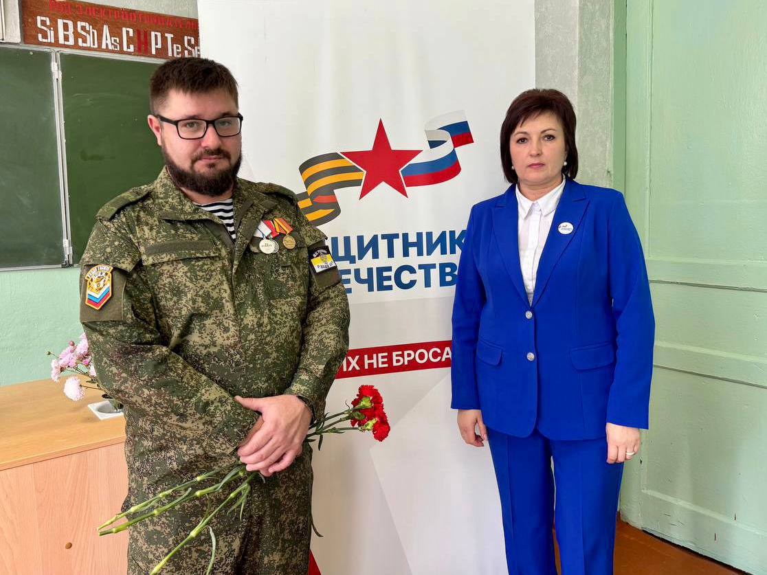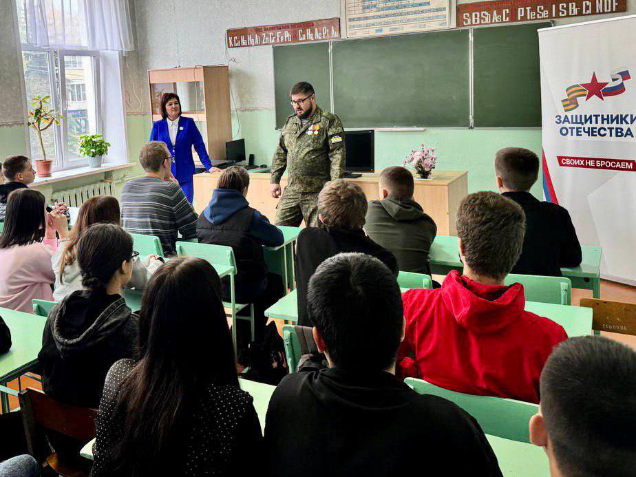 Ветеран поделился с подрастающим поколением своими воспоминаниями о воинской службе и боевом пути, о трудностях и риске, с которыми сталкивался ежеминутно, о быте в условиях специальной военной операции, о чувствах патриотизма и гордости за страну.