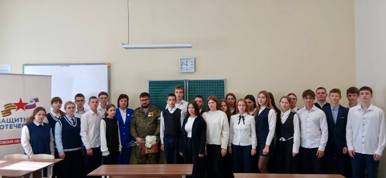 Ветеран СВО Александр Жердев провел урок мужества для студентов Фатежского филиала Дмитриевского агротехнологического колледжа и девятиклассников Фатежской СОШ N1
