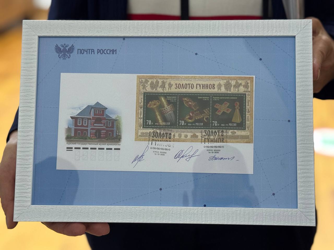 В Курском государственном музее археологии состоялась торжественная церемония специального гашения почтового блока из трёх марок, которые вошли в серию «Археологическое наследие России, посвящённого золоту гуннов.