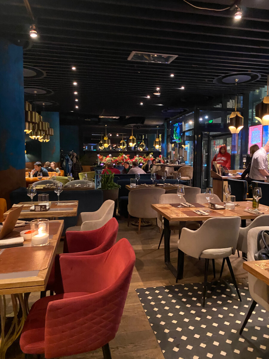 В ресторане царит особая атмосфера: высокие потолки, панорамные окна и стильные мягкие кресла создают невероятный уют. Здесь заготовят множество блюд с акцентом на мясо, включая премиальные стейки, альтернативные варианты, бары, тартары и даже бургеры. Каждое блюдо манит своим вкусом и идеальным сочетанием компонентов.