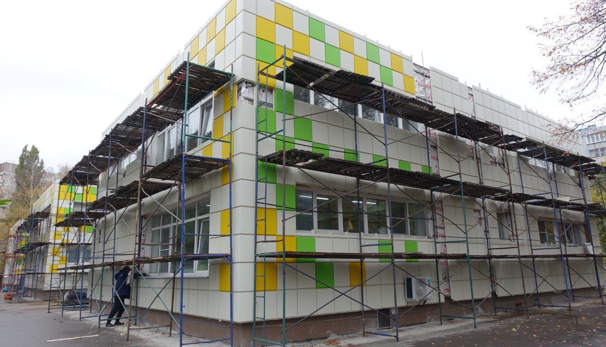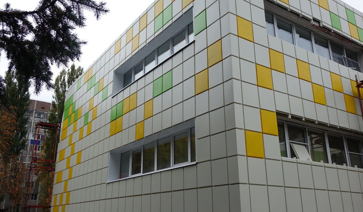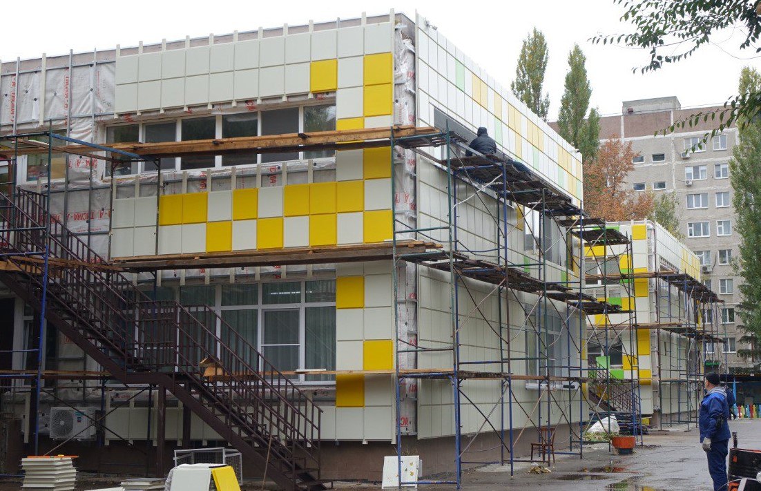В стадии завершения работы по ремонту фасада здания детского сада № 4 «Аленушка». При выполнении фасадных работ выдержан единый архитектурный стиль. Навесная фасадная система не только делает здание более привлекательным, но и позволяет повысить энергетическую эффективность здания.
