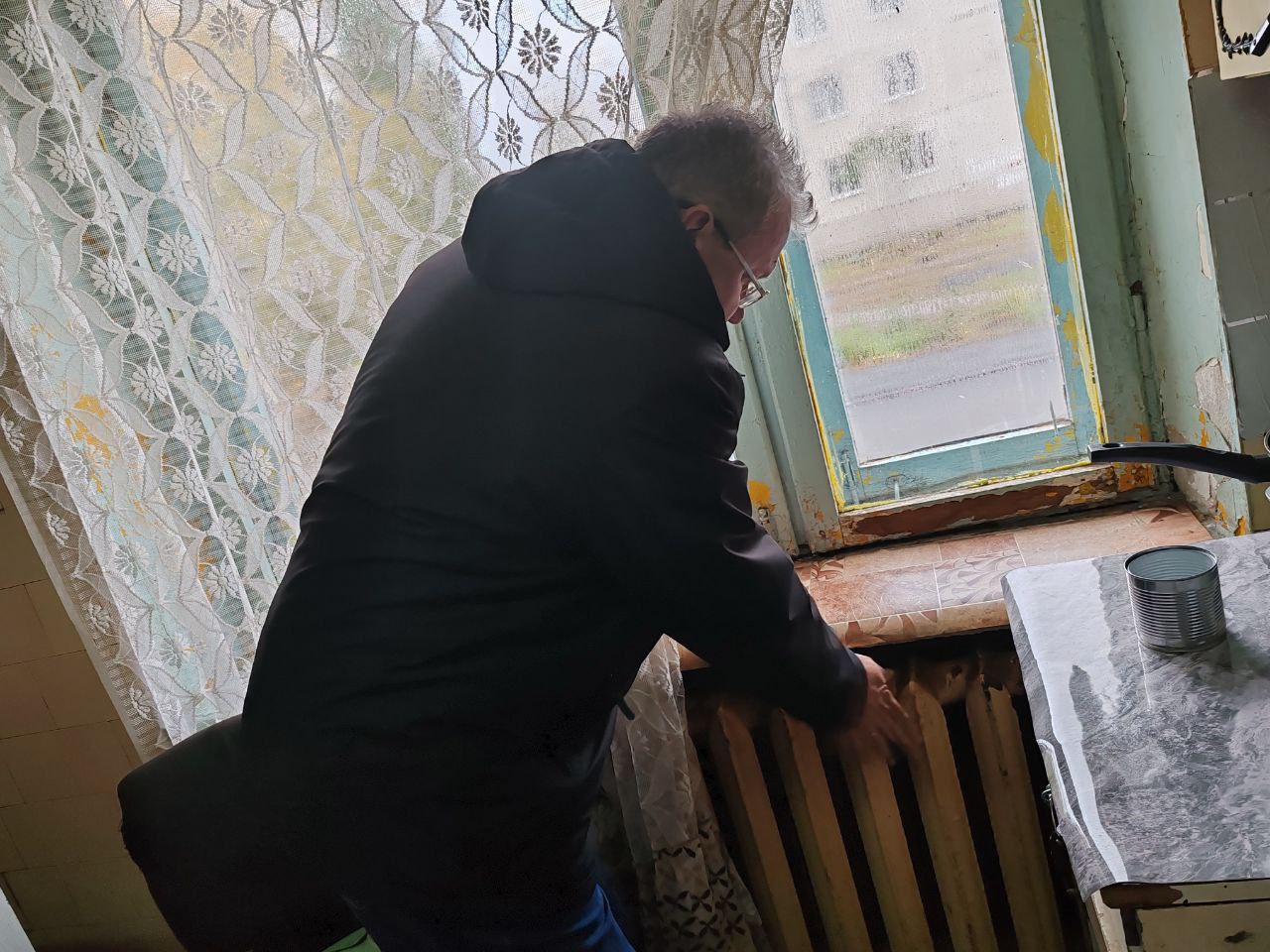 Глава администрации Сеймского округа Олег Васильев по поручению главы города Евгения Маслова совместно с УК «Мир» проверил пуск тепла в дома 26а по ул. Гагарина.
