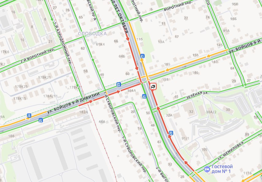 В Курске на пересечении улиц 50 лет Октября и Бойцов 9-й Дивизии столкнулись автомобили в среднем ряду — движение в сторону проспекта Дружбы затруднено.