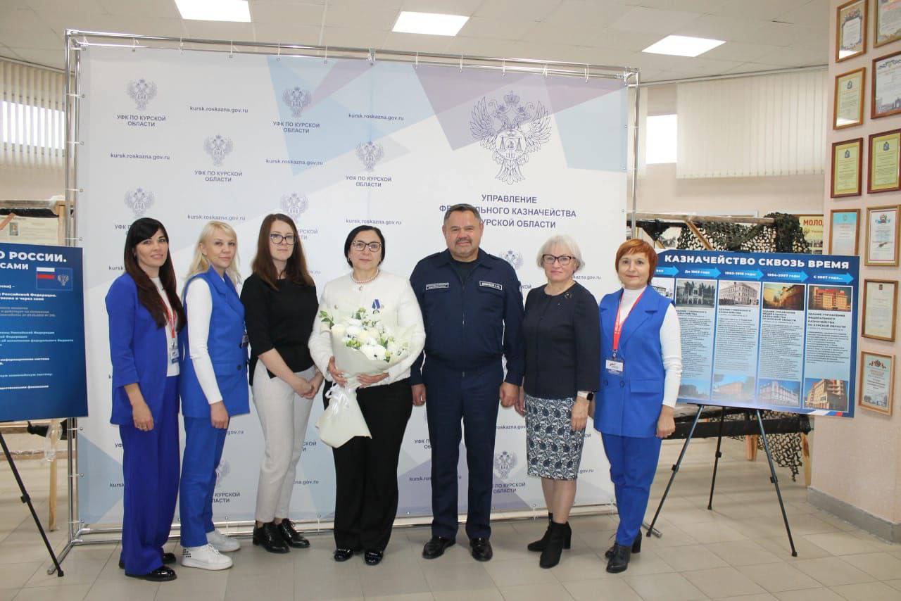 Руководителя филиала фонда Татьяну Банникову наградили медалью «За усердие и пользу» за активное участие в социально значимых проектах. Награду передали замруководителя Федерального казначейства Александр Демидов и руководитель УФК по Курской области Валентина Епифанова.
