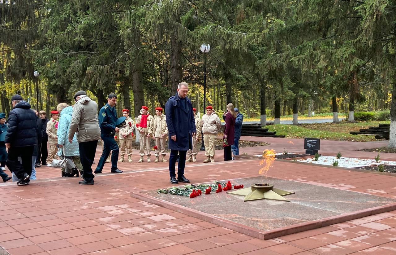 Представители администраций города Железногорска и района, Первые города Железногорска и Железногорского района почтили память погибших минутой молчания и возложили цветы к Вечному огню.
