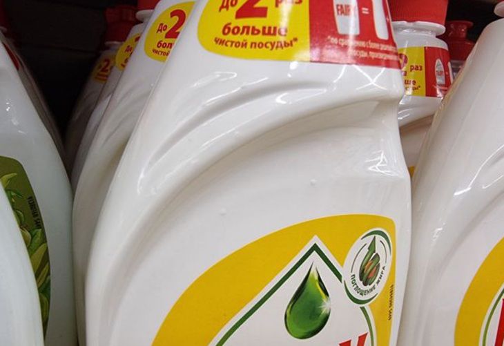 Пятно от еды на ковре портит вид? Разведите 1 столовую ложку средства в 2 стаканах воды, нанесите на загрязнение и промокните губкой. Жидкость эффективно удаляет жир, не повреждая волокна.
