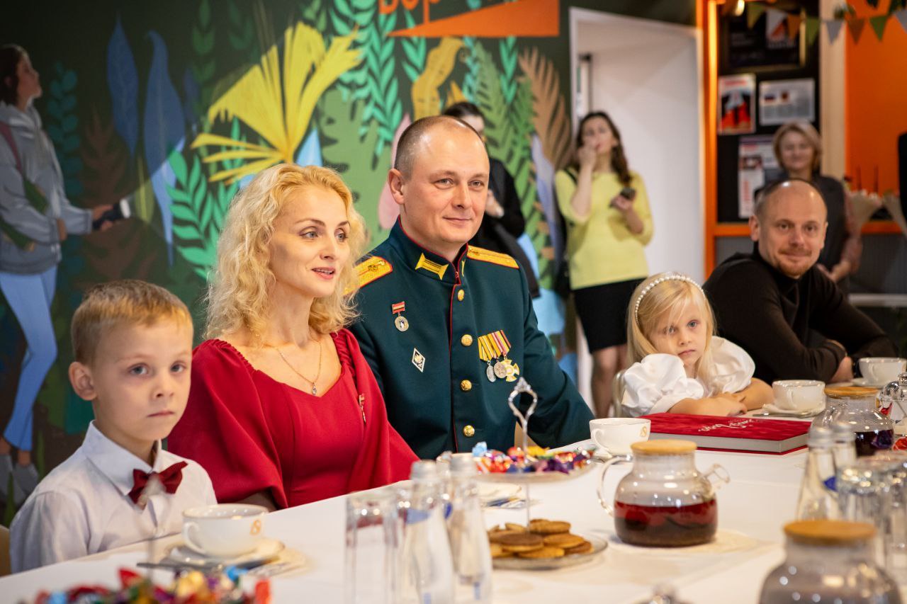 В креативном пространстве «Веранда» губернатор Курской области Александр Хинштейн и глава города Курска Евгений Маслов встретились с семьей Тенёткиных, которая одержала победу во Всероссийском конкурсе «Семья года» в номинации «Многодетная семья». Встреча проходила в непринужденной обстановке в формате чаепития.