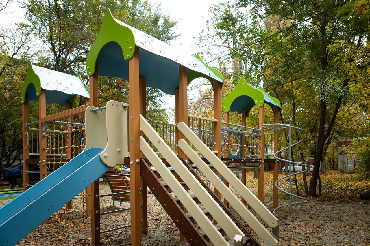 В то же время, в городе активно устанавливаются новые детские площадки. Одна из новых площадок уже появилась во дворе дома на улице 50 лет Октября, где дети теперь могут безопасно и весело проводить время.