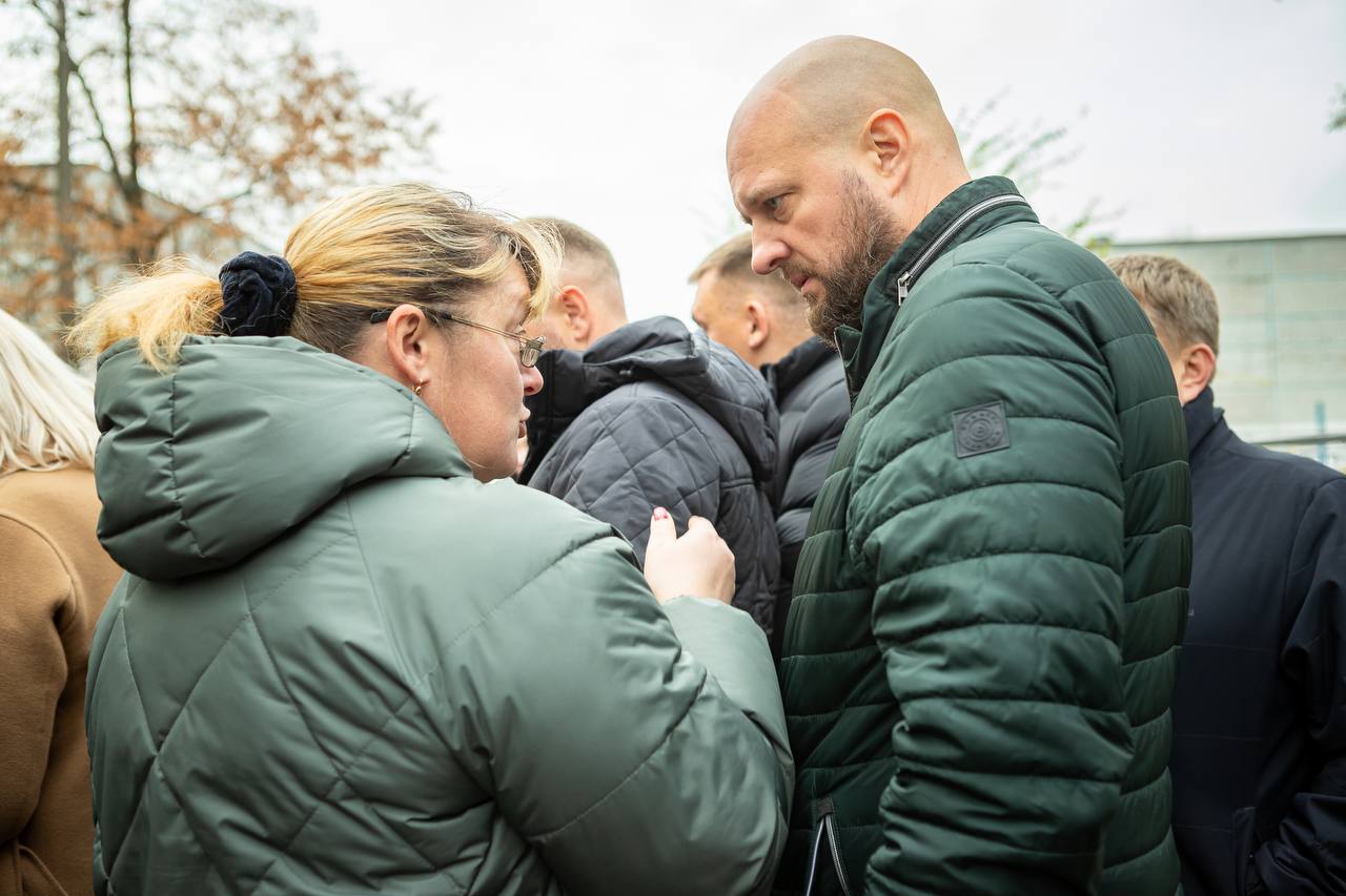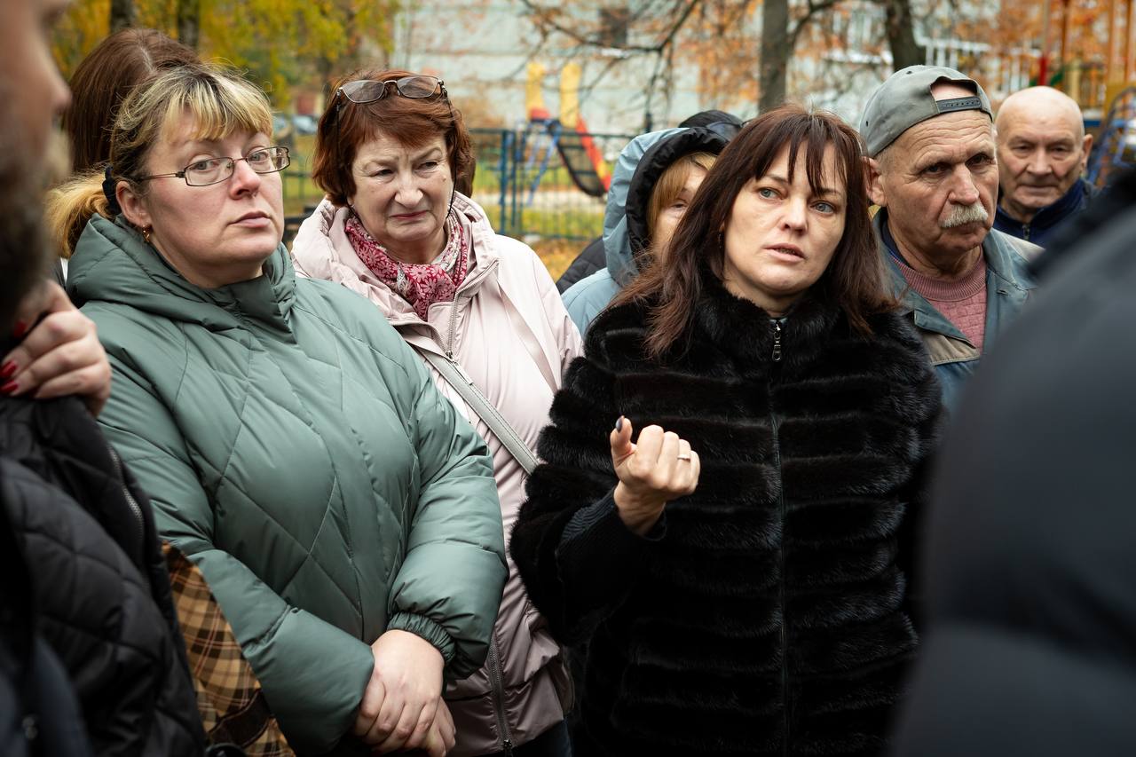 Жители высказали недовольство по поводу качества входных дверей, которые планируются к установке в соответствии с федеральными нормативами. Александр Евсеевич пообещал найти решение этого вопроса, двери должны быть надежными. На следующей неделе строители приступят к восстановлению фасада в доме напротив, который посечён осколками.
