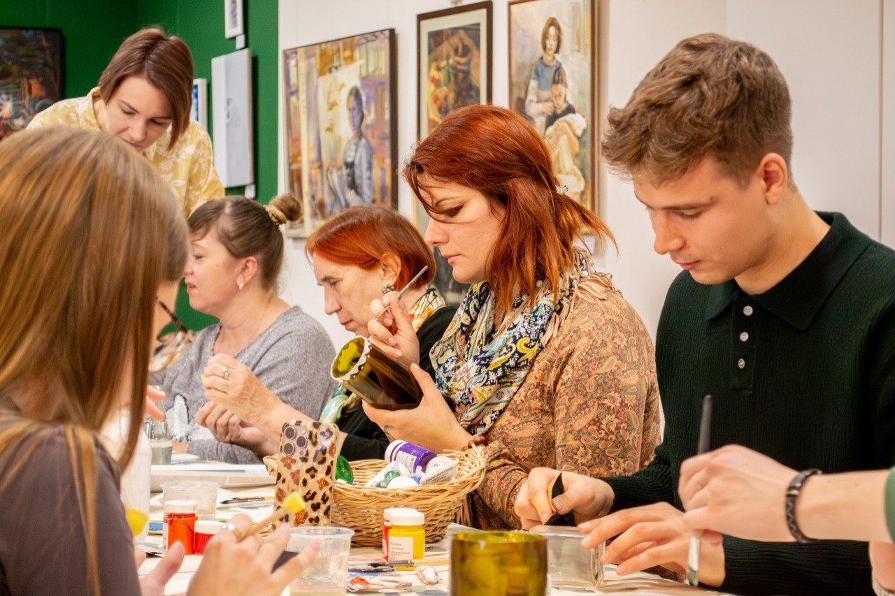 Резидент «Веранды» Светлана Бондарева поделилась с участниками секретами работы со стеклорезом. По итогам мастер-класса участники создали красивые вазы и приобрели ценный опыт работы со стеклом и акриловыми красками. Так обычные предметы могут обрести новую жизнь в руках творческих людей.