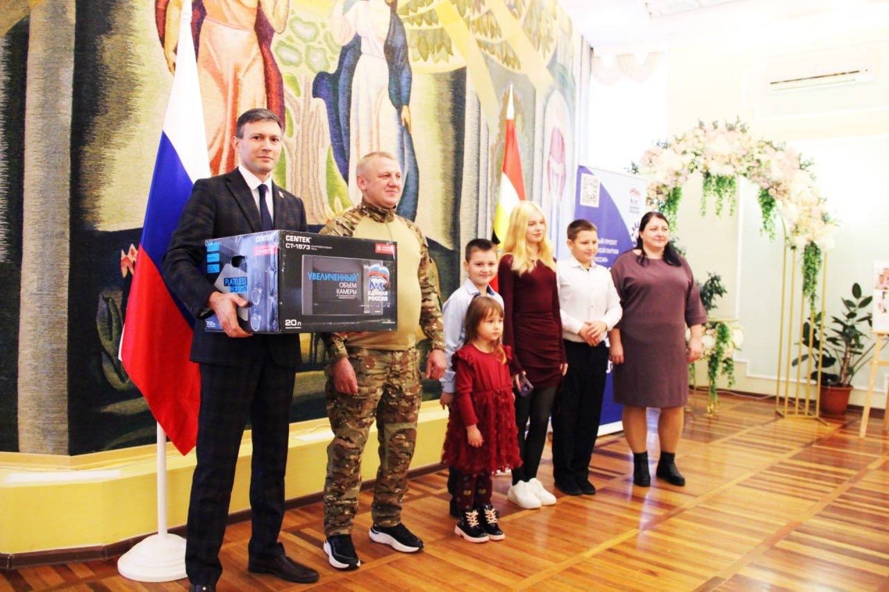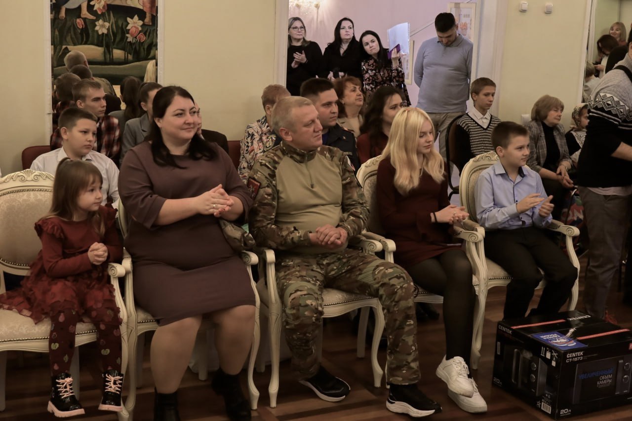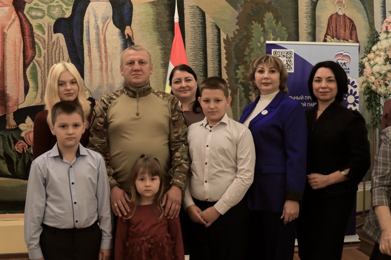 «Быть отцом непросто, а хорошим отцом - еще сложнее. Мы желаем вам терпения, сил и удачи в воспитании детей, потому что это труд, который должен приносить удовлетворение и радость», - сказал, обращаясь к герою, и.о. руководителя регионального исполкома партии «Единая Россия», отец двух дочерей Сергей Муравьёв и вручил семье памятный подарок от партии.