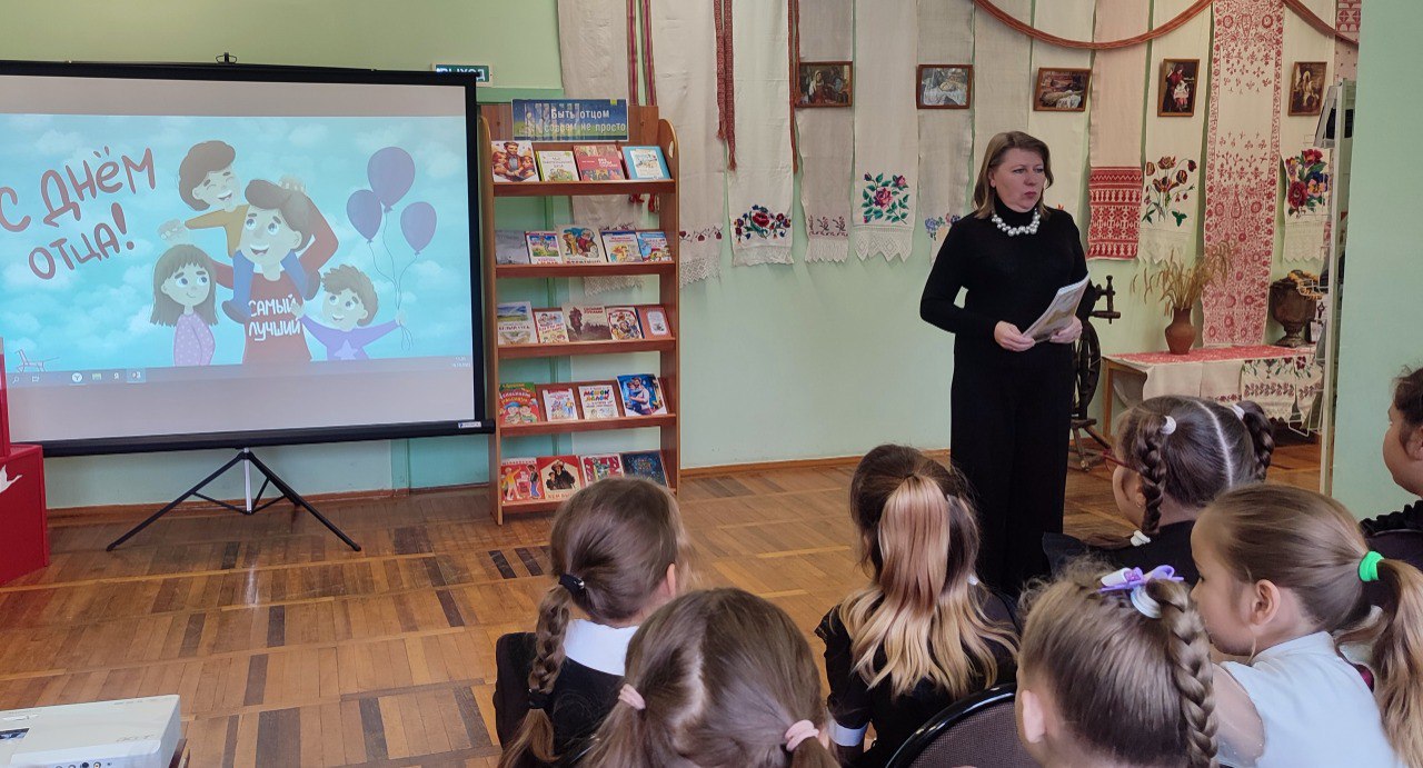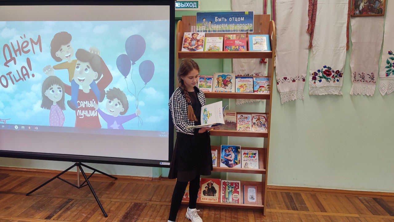 Вниманию ребят была представлена тематическая выставка «Быть отцом совсем не просто», которая ознакомила ребят с самыми разными художественными произведениями, посвященными папам.