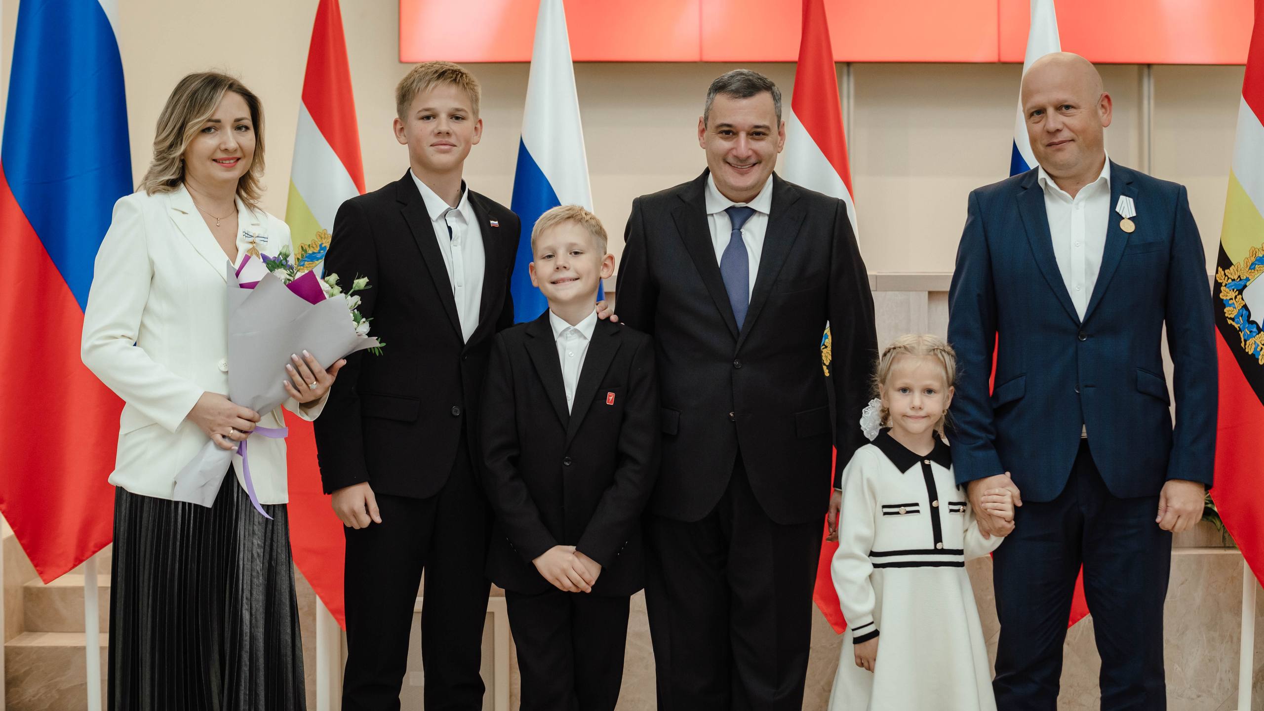 В числе награждённых и те, кто выполняют самую сложную родительскую миссию, — воспитывают детей. Почётное звание матери-героини присвоено Любови Михайловне Орловой из Льгова. Многодетной семье Тереховых вручил медаль ордена «Родительская слава».