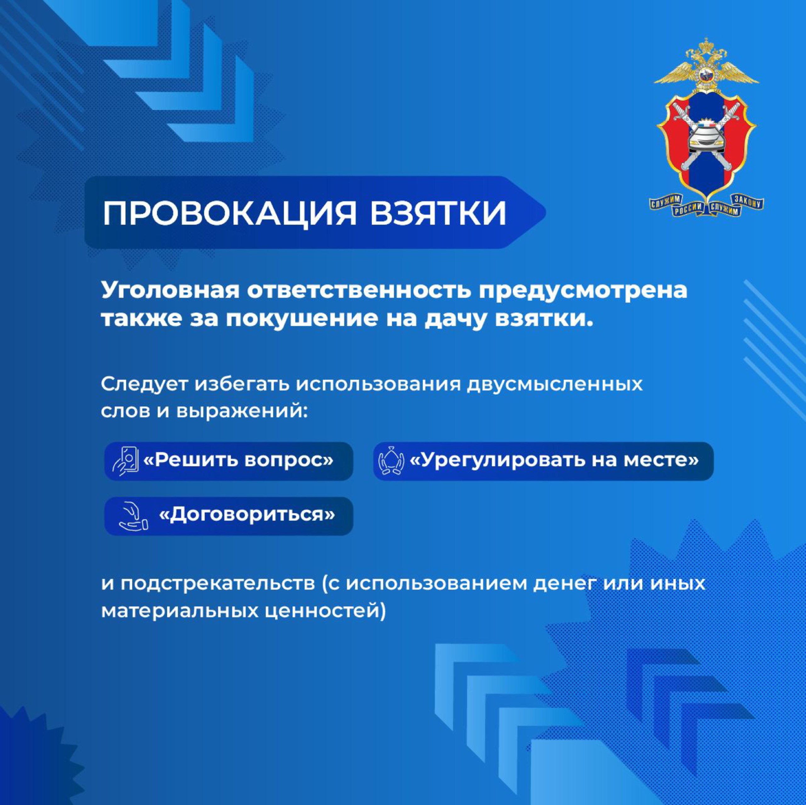 Курчатовская Госавтоинспекция напоминает – согласно статье 1 Федерального закона от 25 декабря 2008 года № 273-ФЗ «О противодействии коррупции» под коррупцией понимается злоупотребление служебным положением, дача и получение взятки, злоупотребление полномочиями, подкуп, либо иное незаконное использование физическим лицом своего должного положения вопреки законным интересам общества и государства в целях получения выгоды в виде денег, ценностей, иного имущества или услуг имущественного характера, иных имущественных прав для себя или третьих лиц, либо незаконное предоставление такой выгоды указанному лицу другими физическими лицами, а также совершение указанных деяний от имени или в интересах юридического лица. За дачу или получение взятки лицо подлежит уголовной ответственности - получение взятки (ст. 290 УК РФ), дача взятки (ст. 291 УК РФ), посредничество во взяточничестве (ст. 291.1 УК РФ). Причем наказуемым деяние (как получение, так и дача взятки) считается также в ситуации, когда взятка по указанию должностного лица передается иному физическому или юридическому лицу.