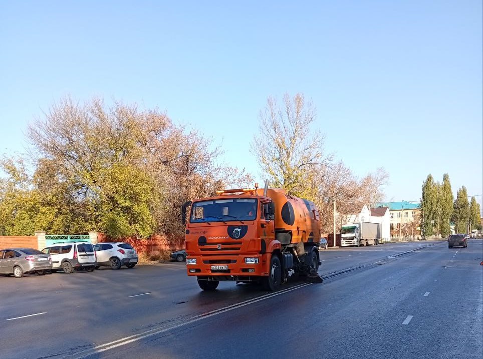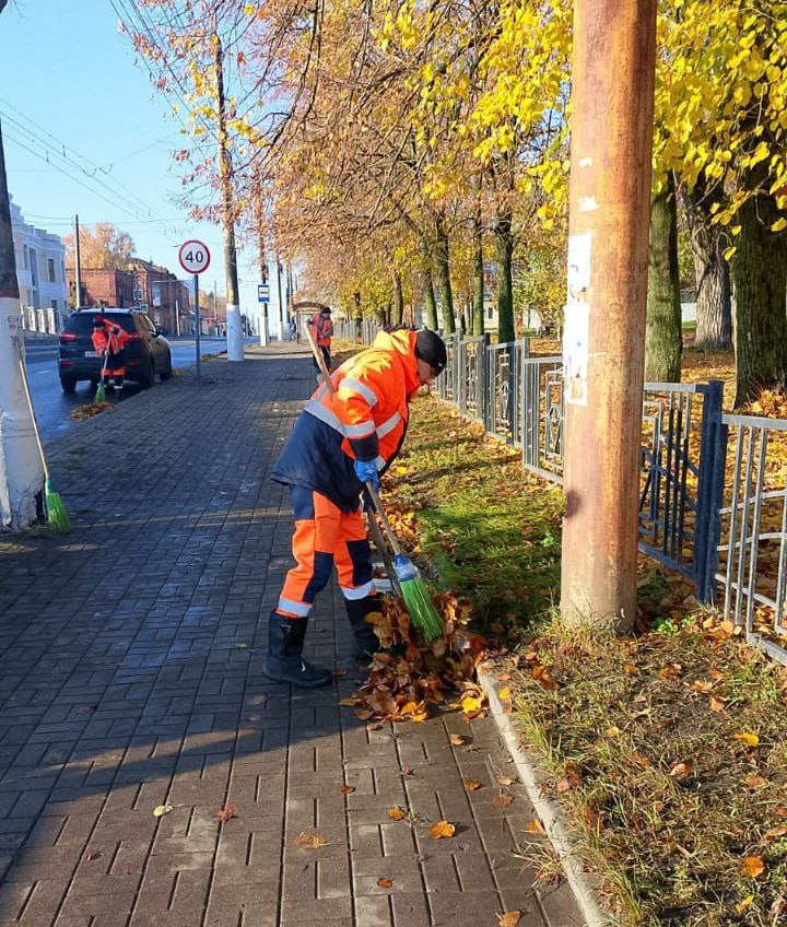 Бригады убирают опавшие листья, удаляют загрязнения с дорог и тротуаров, собирают и вывозят мусор с остановок и из укрытий.