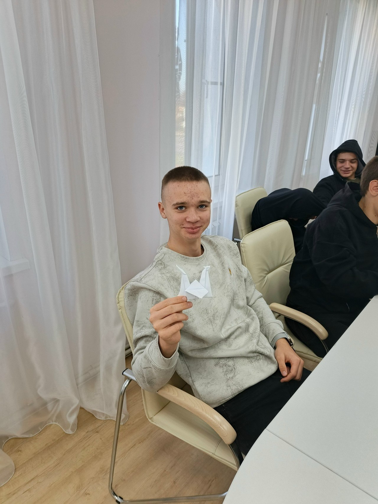 В завершение мероприятия в память о погибших воинах студенты сделали журавликов.