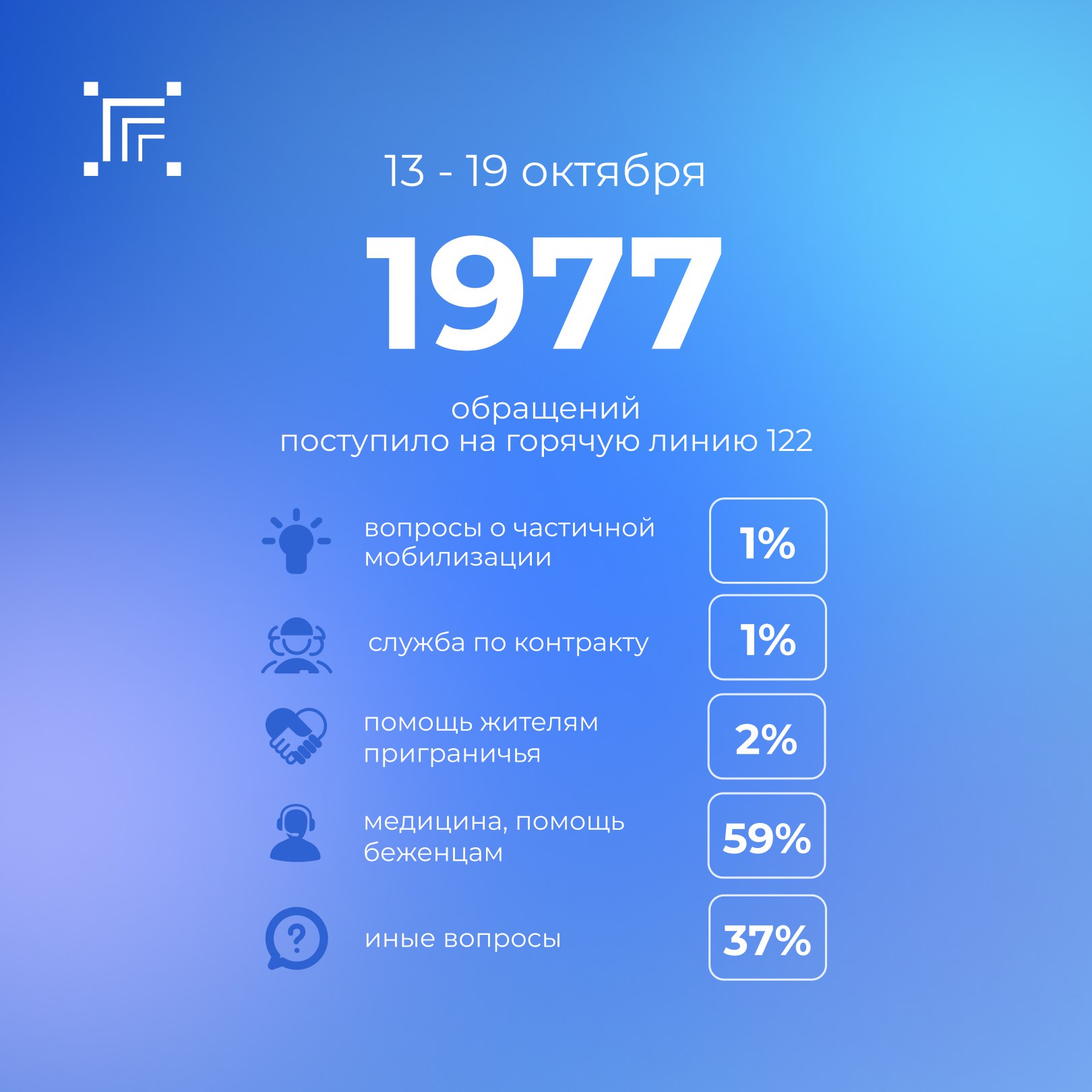 Всего за прошедшую неделю на «горячую линию» 122 поступило 1977 обращений
