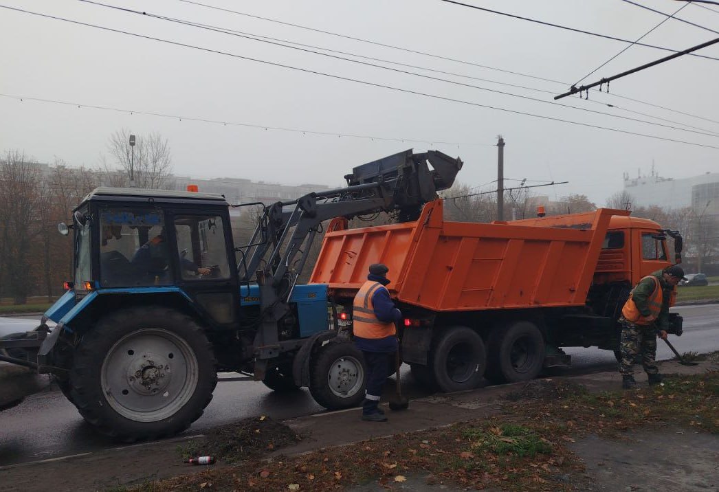 Комитет ЖКХ сообщает, что в уборке улиц задействованы 69 сотрудников и 34 машины. Сегодня специалисты удаляют опавшие листья и загрязнения с дорог и тротуаров, а также убирают грязь и мусор с остановок общественного транспорта и из укрытий.