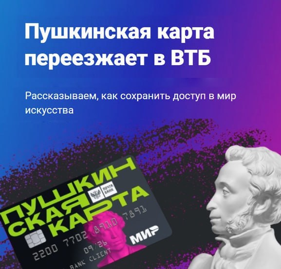 С 1 января 2026 года оператором программы «Пушкинская карта» станет ВТБ.