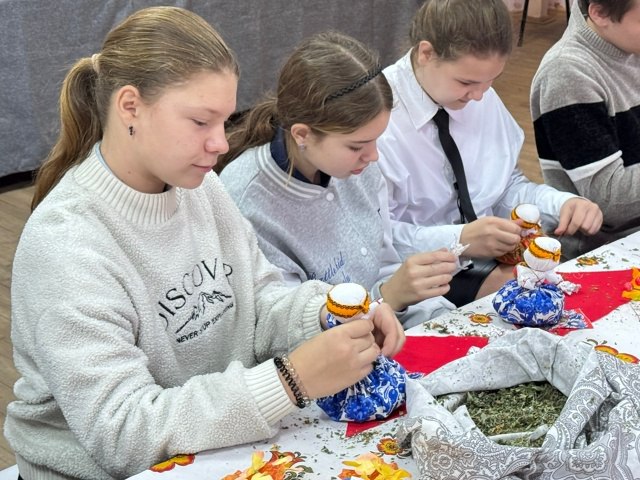 Ребята с энтузиазмом творили, наполняя свои куклы ароматными травами. Каждая работа получилась уникальной, а атмосфера была тёплой, весёлой и творческой.
