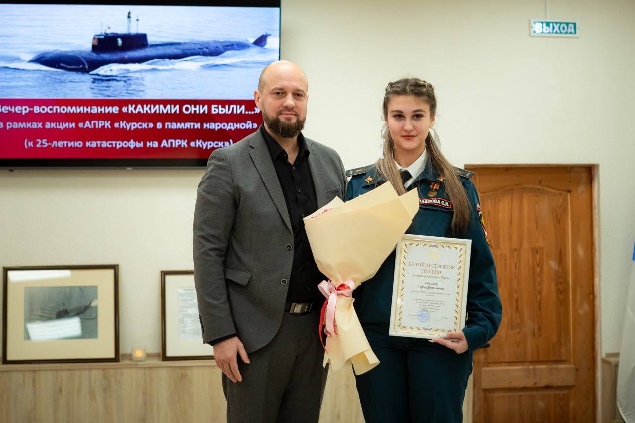 В этом году исполнилось 25 лет с момента катастрофы на атомном подводном ракетном крейсере «Курск» в Баренцевом море. Семеро из 118 погибших подводников были куряне. Среди них выпускник автотехнического колледжа - матрос Олег Евдокимов, служивший коком в четвёртом отсеке атомохода.
