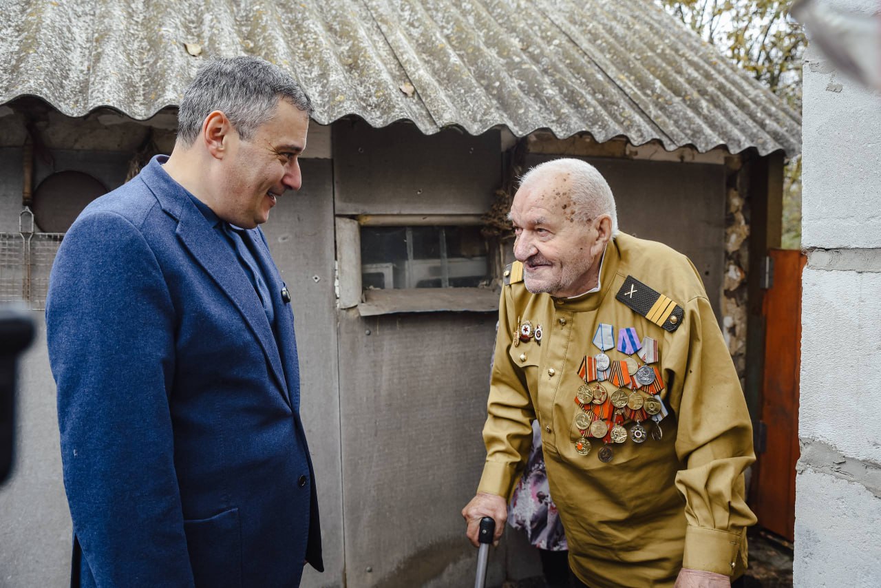 Губернатор Александр Хинштейн во время работы в Тимском районе посетил участника Великой Отечественной войны Михаила Федоровича Степанова.