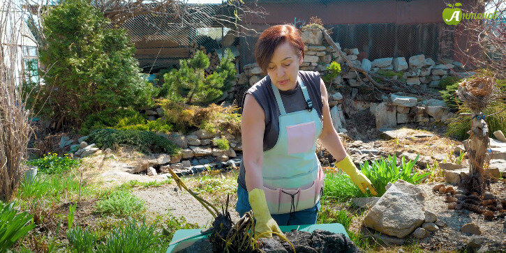 - Воспользуйтесь острым ножом для аккуратного деления корней, запомнив, что от общего размера растения лучше не отрезать более 50% корневой системы, чтобы его развитие не нарушилось.