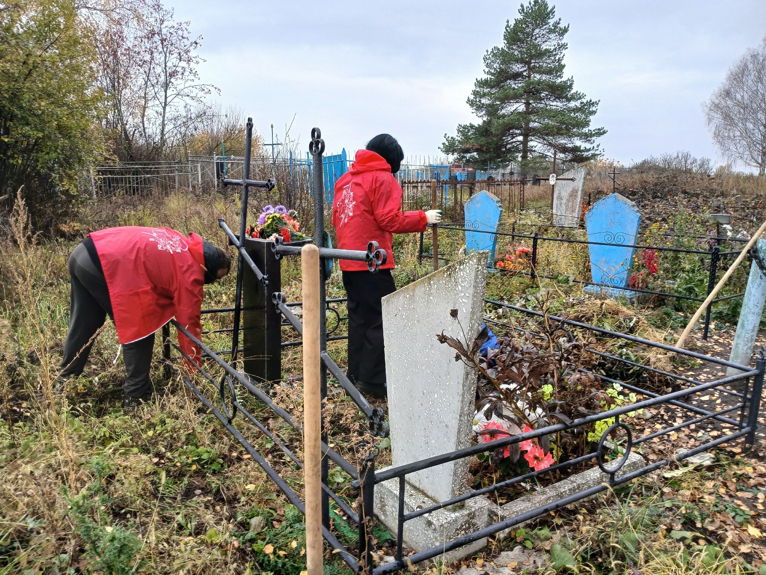Тимуровцы в деле. Юные тимуровцы из Движения Первых Пристеснской школы провели акцию памяти, облагородив могилы ветеранов Великой Отечественной войны