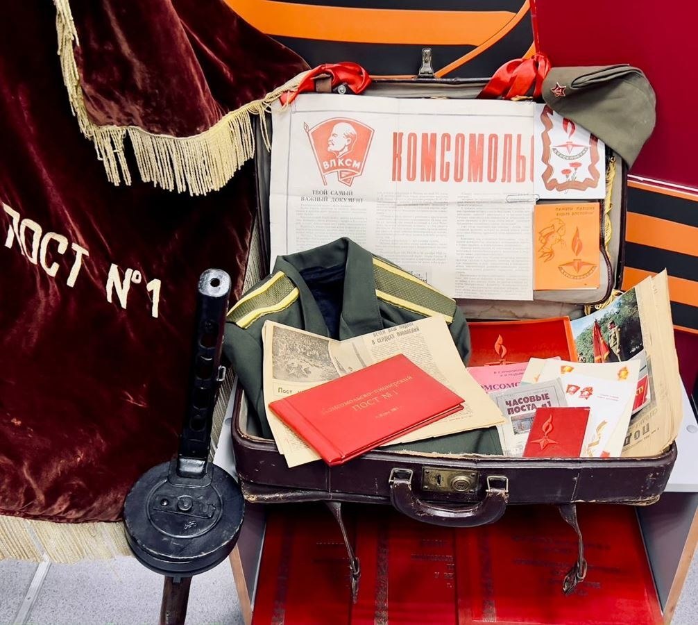 Зал Славы на Посту № 1 бережно хранит историю создания и беспримерного служения курских ребят на мемориале "Памяти павших в годы Великой Отечественной войны 1941-1945гг. ". В экспозиции «Музей в чемодане» представлены фотографии, газеты, значки, первая форма постовцев, подлинные документы – свидетельства славной истории пионерско-комсомольского Поста № 1 г. Курска.