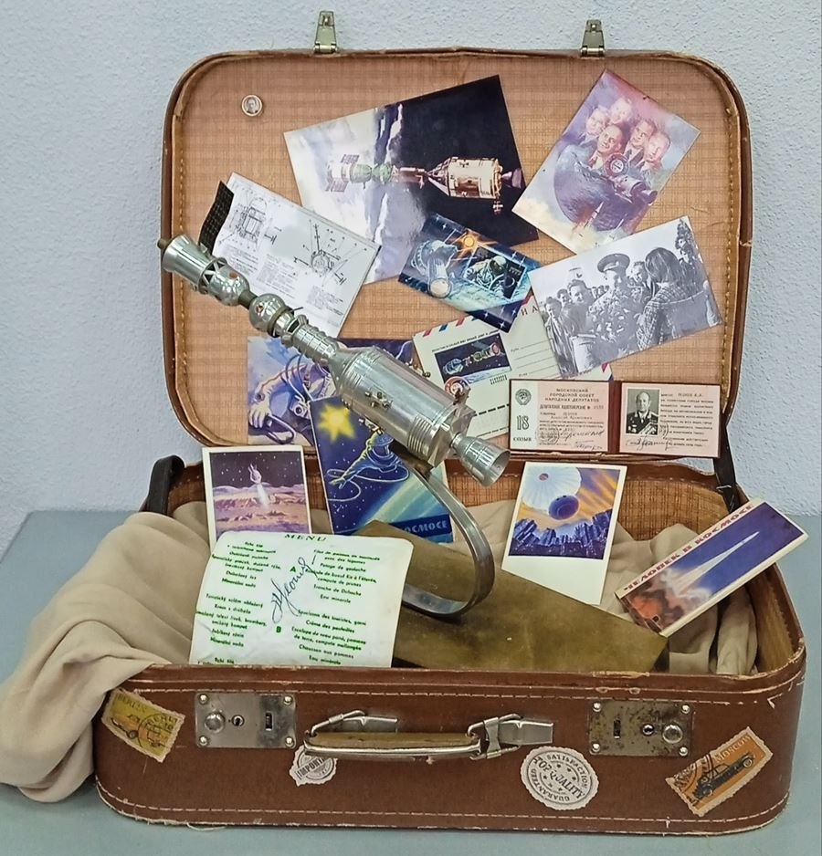 Музейный чемодан космонавтики им. Н.П. Слепцова Дворца пионеров и школьников подготовил выставку, посвященную 60-летию первого выхода в открытый космос советского космонавта А.А. Леонова и 50-летию программы совместного международного полёта по программе «Союз-Аполлон». Она называется «В скафандре над планетой», в ней представлены салфетка с автографом Алексея Архиповича Леонова, набор открыток с его рисунками, макет стыковки «Союз-Аполлон», фотографии, значки, марки, почтовые конверты.