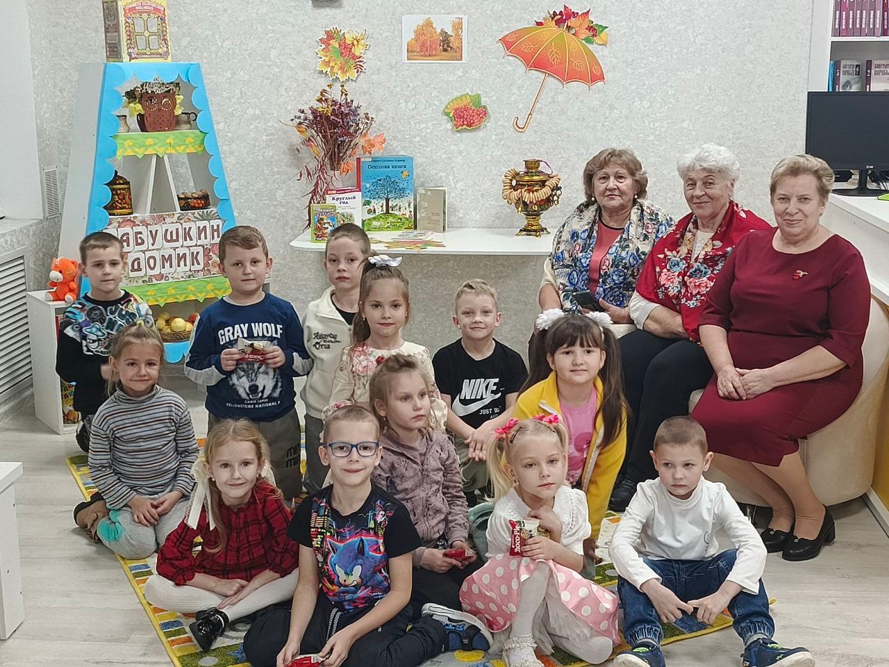 Дорогие наши бабушки Людмила Александровна Голубева и Любовь Павловна Емельянова познакомили ребят с осенними приметами, рассказали о праздниках, которые празднуют осенью. Любовь Павловна прочитала своё стихотворение о золотом времени года. Работники библиотеки провели веселые конкурсы.