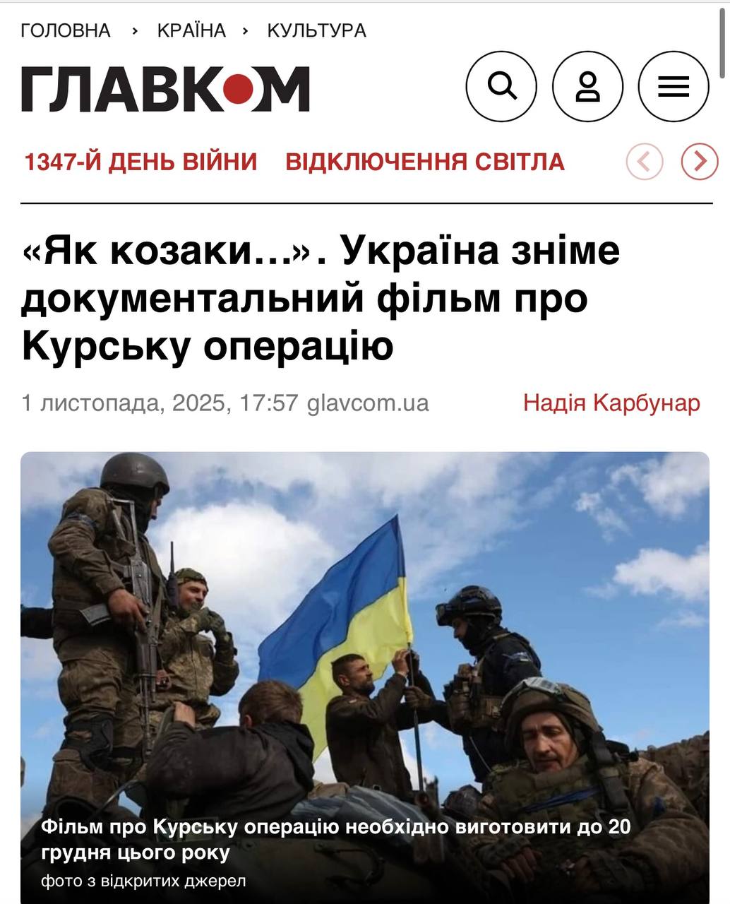 Государство выделит 2.3 миллиона гривен на съемку документального фильма «Как казаки на Курщину ходили» о Курской авантюре. Фильм расскажет о том, как начиналась и шла операция, что делали наши, чтобы выбить ВСУ, какие были трудности для всушников, каковы последствия и было ли решение об этой операции правильным