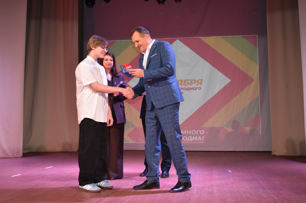 Главным событием праздника стало вручение юным железногорцам паспортов. С наилучшими пожеланиями вручил главный документ гражданина Российской Федерации Дарье Тришкиной, Снежане Донченко и Егору Зинакову.