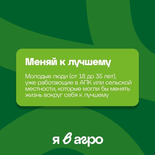 молодёжи, включение её в социально-экономическое развитие малых территорий и повышение привлекательности сельского образа жизни.