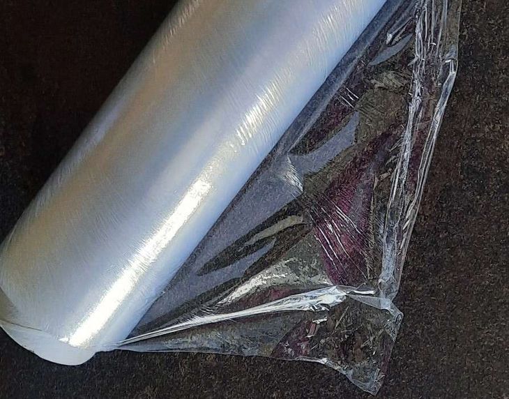 Пищевая пленка поможет надежно закрепить коврик на полу.