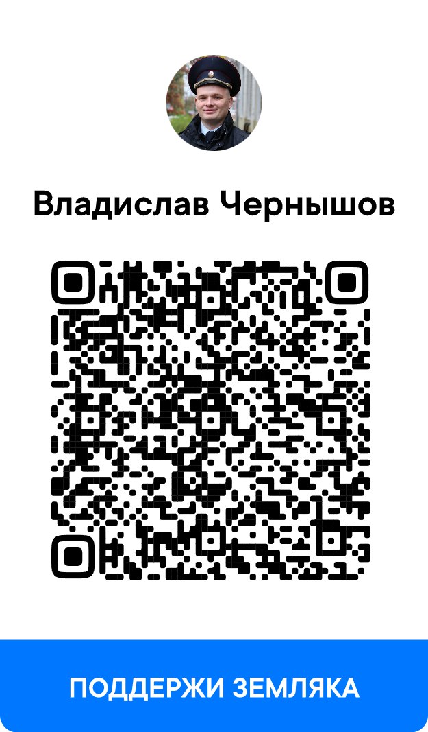 Проголосовать за нашего участкового можно ТУТ (https://clck.ru/3Q9JUi) или через QR-код на фото.