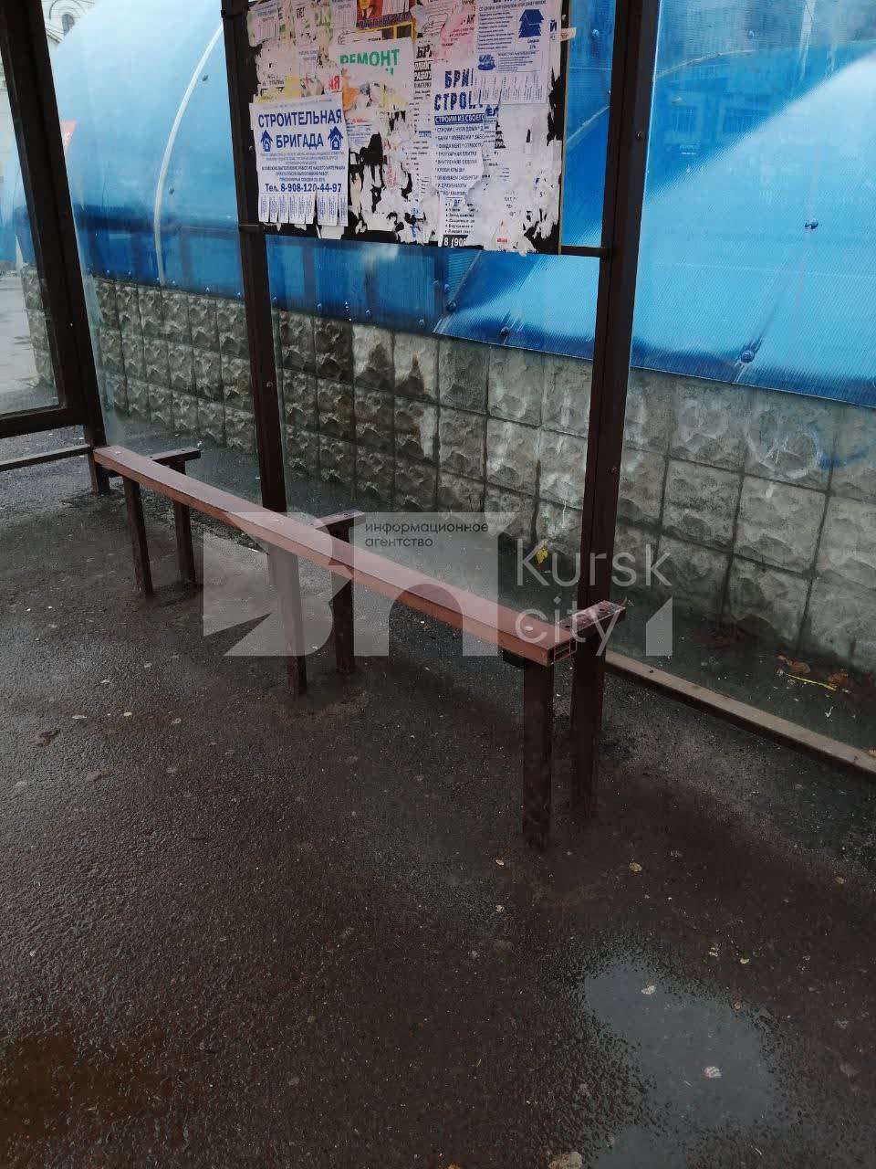 Минимум комфорта или лавочка для самых стойких на остановке Рокоссовского в Курске. Фото в наш бот прислали подписчики.