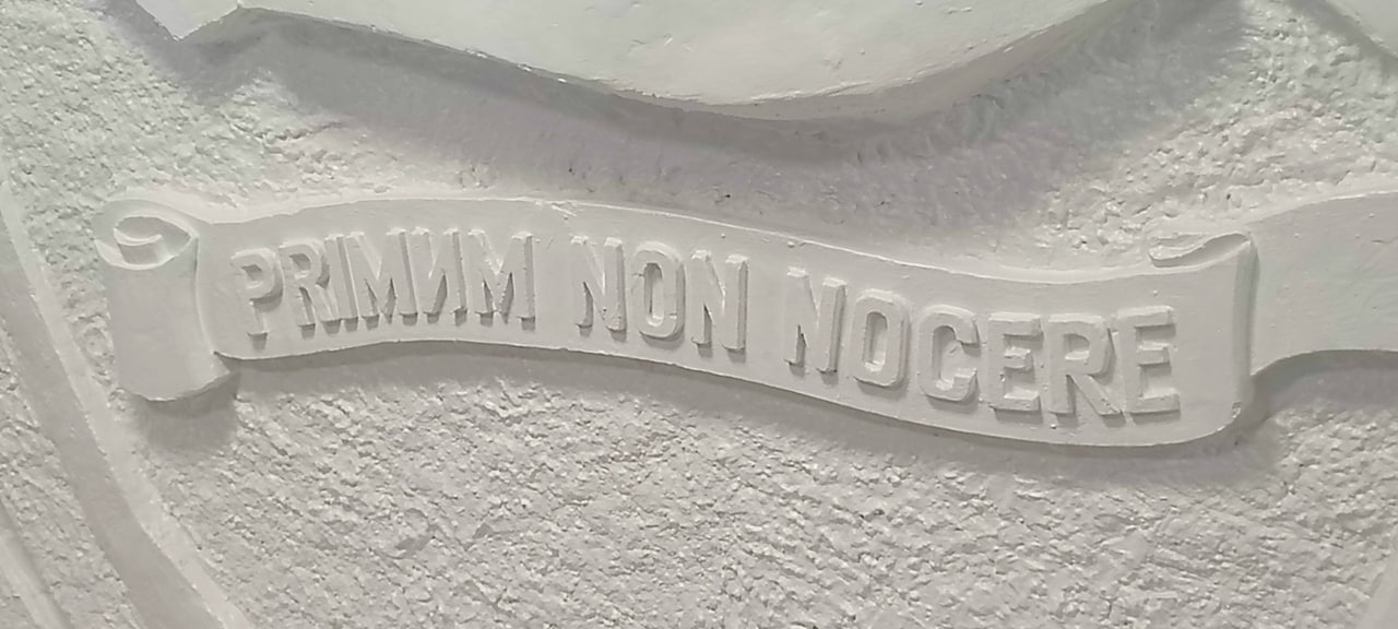 Куряне заметили ошибку во фразе «Primum non nocere», которая по-русски звучит как «Не навреди». Вместо латинской «u» высечена буква, похожая на русскую «и».