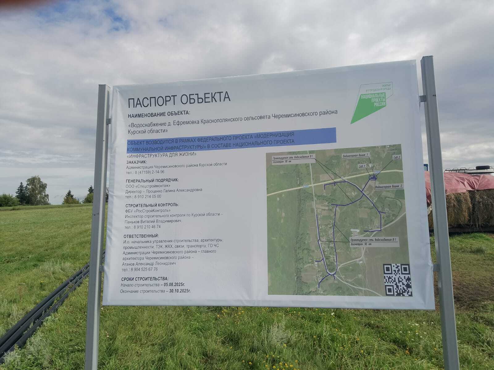 В д. Ефремовка Краснополянского сельсовета Черемисиновского района Курской области благодаря региональному проекту «Модернизация коммунальной инфраструктуры» национального проекта «Инфраструктура для жизни» завершается строительство системы водоснабжения.