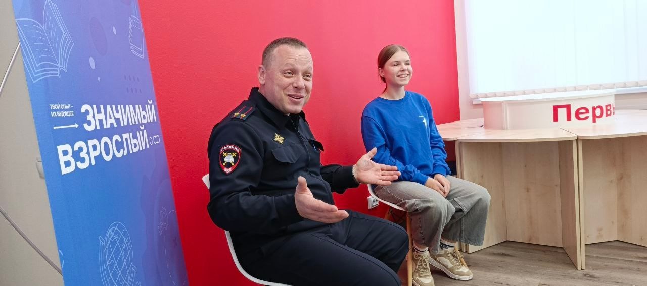 В Центре Первых прошла Классная встреча с начальником отделения пропаганды управления ГАИ Курской области Александром Жиленковым. Участниками встречи стали активисты, которым небезразличны проблемы о правилах поведения на пешеходных переходах и в общественном транспорте. С гостем поднимали актуальный вопрос: профилактика детского дорожно-транспортного травматизма. Диалог получился полезным, конструктивным и интересными. В конце встречи Александр Игоревич пожелал ребятам быть осторожными на дороге.