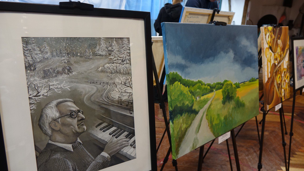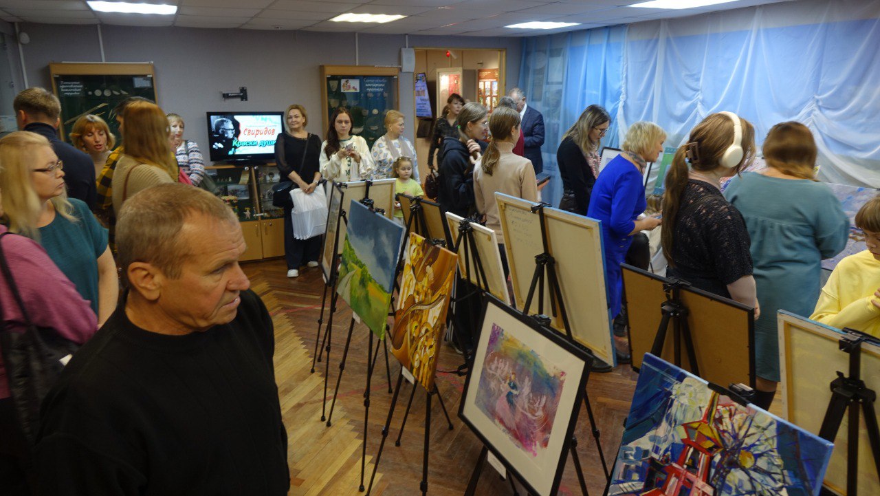 Сегодня в Курчатове на площадке краеведческого музея открылась выставка картин победителей конкурса изобразительного искусства «Свиридов. Краски души!».